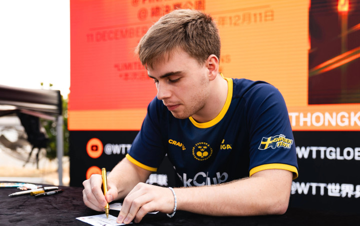 林昀儒搓长反手位,正手对攻最终11比7拿下了第二局。莫雷加德还是反手环节不如对手稳定有得分率,始终是处于落后追分的状态,很难持续得分。林昀儒反手是主要得分点,但是他的正手侧身进攻的能力也不弱,站位也更加靠前。第三局比赛林昀儒吃正手短球开局1比4落后,通过摆短后的正手抢攻,迅速将比分追平。